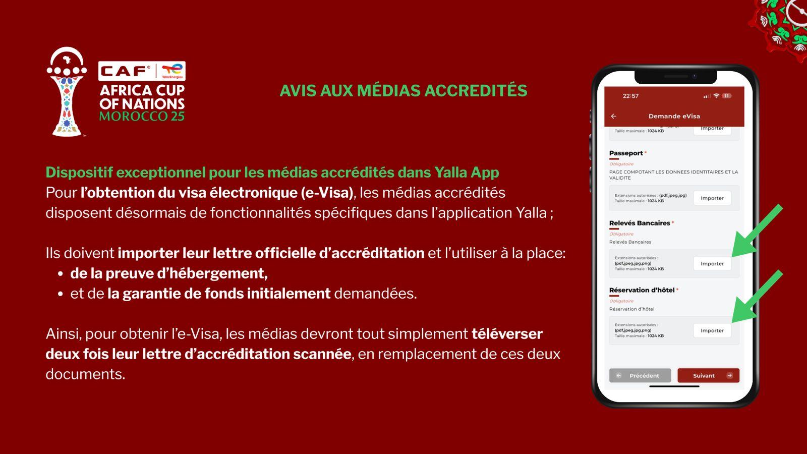 Pour l’obtention du visa électronique (e-Visa), les médias accrédités disposent désormais de fonctionnalités spécifiques dans l’application Yalla ;
