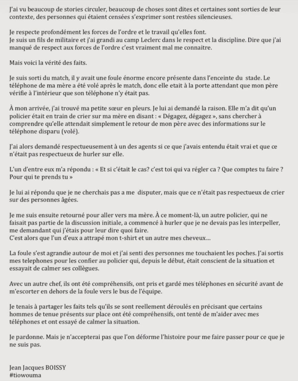 Incident avec des forces de l'ordre : Jean Jacques Boissy sort du silence