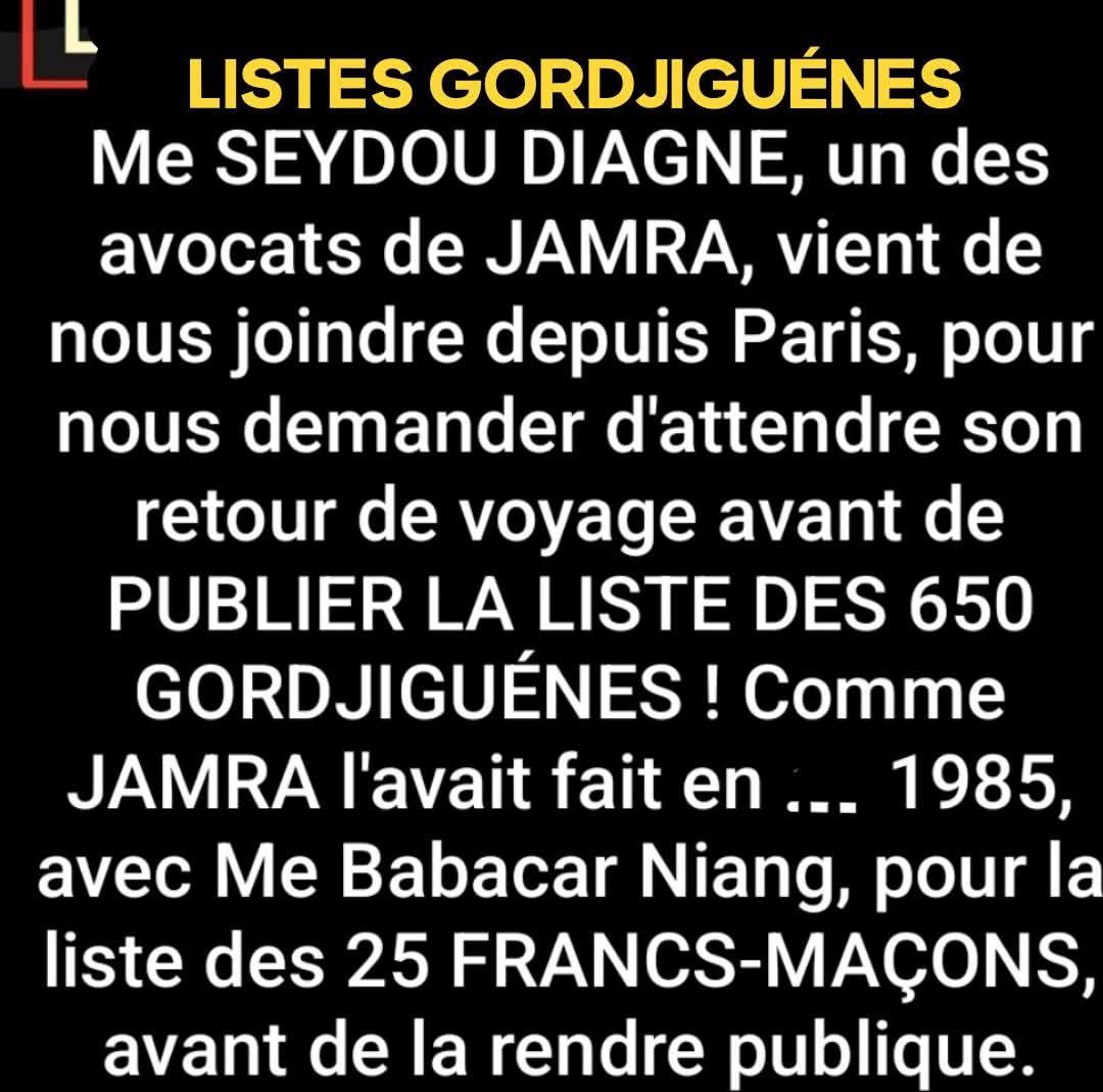 Mame Makhtar Guèye et ses collaborateurs affirment que cette démarche s'inscrit dans la continuité d'une action antérieure, rappelant que l'organisation avait, en 1985, avec Me Babacar Niang, procédé de la même manière pour la liste des 25 francs-maçons, avant de la rendre publique.