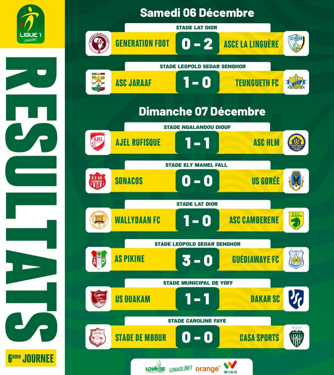 iGFM (Dakar) La 6e journée de Ligue 1 sénégalaise s'est disputée ce week-end avec des résultats différents.