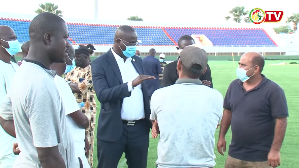 «Ce qu’on a constaté aujourd’hui sur le terrain, c’est qu’il y a beaucoup d’améliorations sur la pelouse et nous pensons que les joueurs, peut-être, seront très satisfaits de la pelouse qu’on leur montrera. Mais elle n’est pas encore au top. Peut-être d’ici le mois d’octobre elle sera très correcte, vraiment irréprochable, mais actuellement ce qu’on peut dire, c’est que c’est très correcte, il y a une bonne surface où le ballon roule», a indiqué Mayacine Mar, le Directeur technique national. Ci-dessous la vidéo