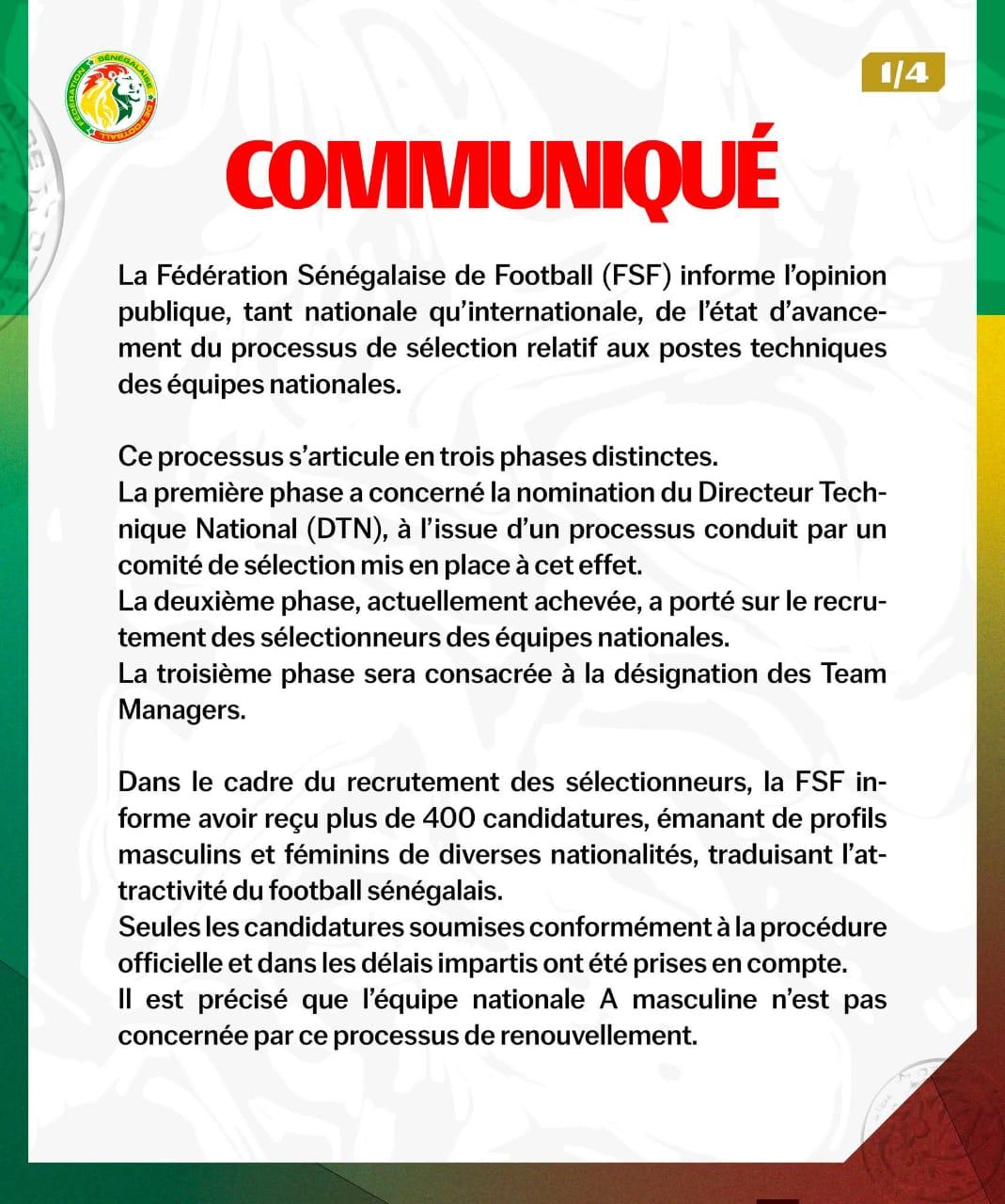 iGFM (Dakar) La direction technique nationale de football dirigée désormais par Souleymane Diallo, a dévoilé le nouvel attelage des sélections nationales du Sénégal. Ci-dessous, les différentes nominations.