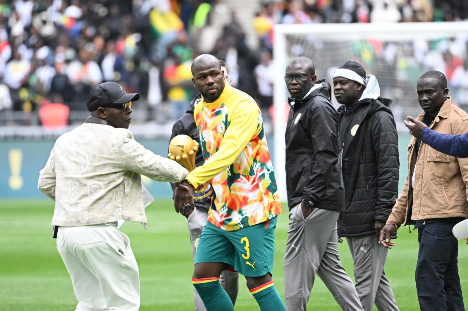 iGFM (Dakar) Malgré le coup de pression juridique du Maroc, déclaré gagnant de la CAN après les incidents de la finale, par un jury d'appel de la CAF décrié, les joueurs du Sénégal ont défilé avec le trophée de la compétition sur la pelouse du Stade de France avant leur match amical contre le Pérou. De belles images à découvrir ci-dessous.