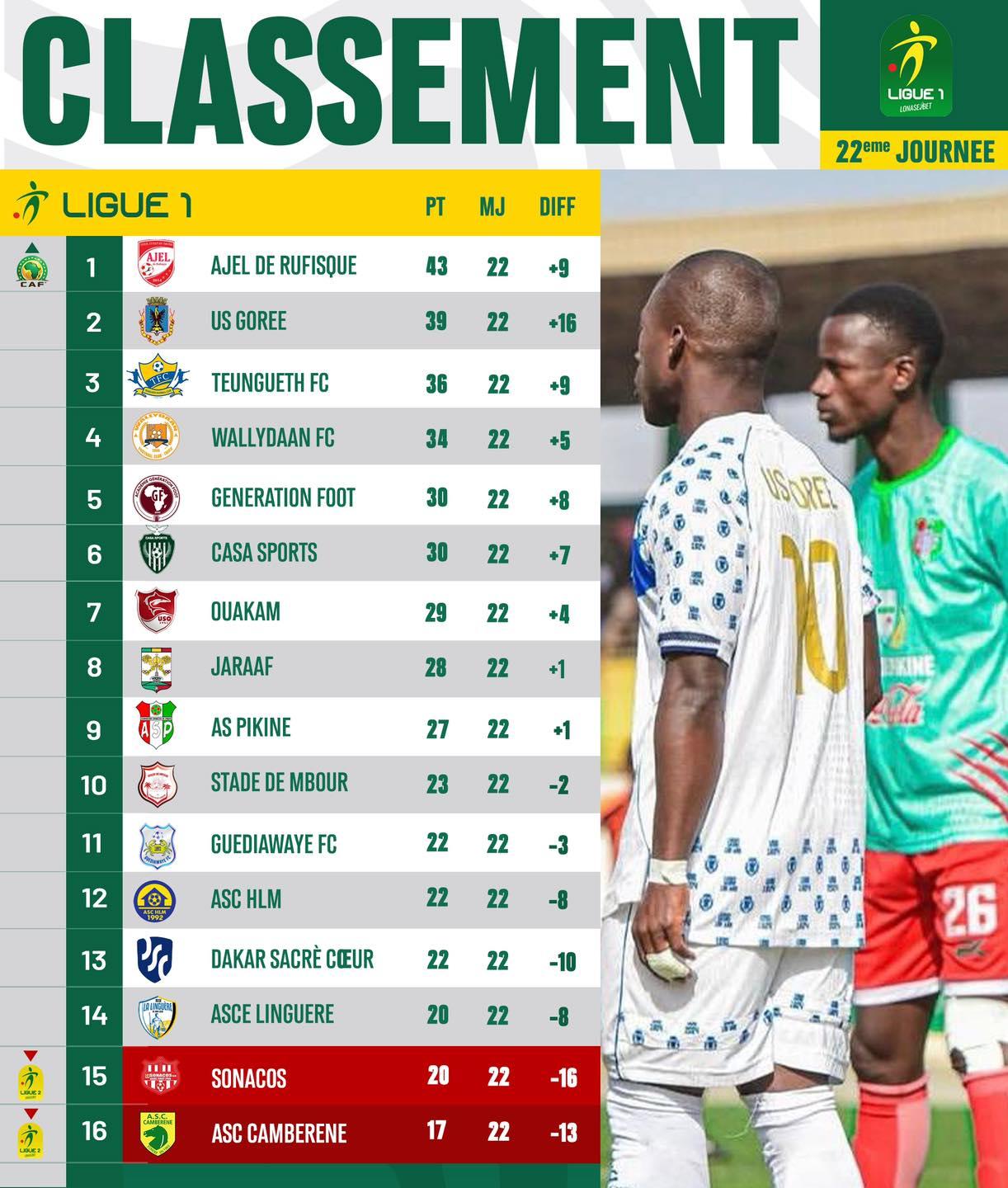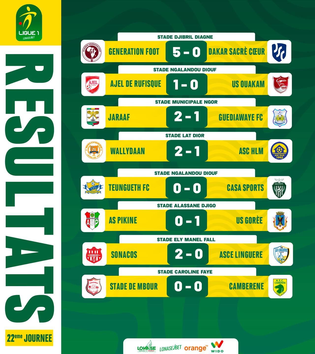 iGFM (Dakar) La ligue 1 sénégalaise a bouclé sa 22e journée, ce dimanche avec les quatre dernières rencontres.