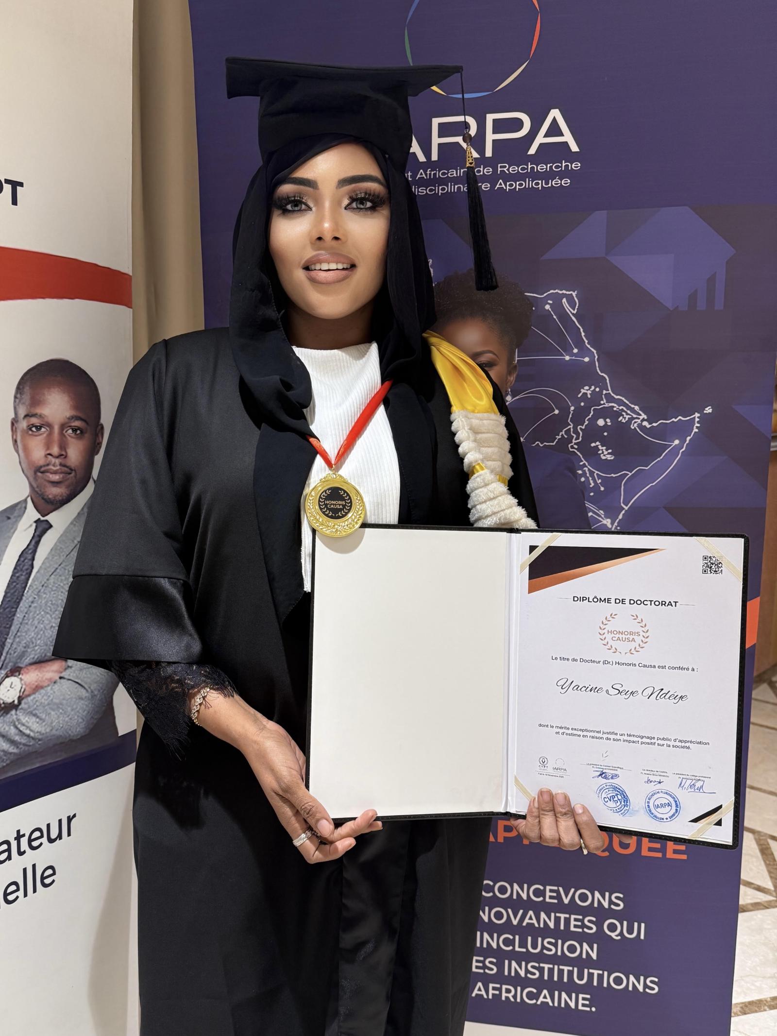 iGFM – (Dakar) La présentatrice vedette de l'émission ‘’HalamBi’’ sur la TFM, Yacine Rassoul Sèye, vient d'être distinguée par l'Institut Africain de Recherche Pluridisciplinaire Appliquée (IARPA) et le Centre de Valorisation Professionnelle de Tunis (CVPT) pour son engagement exemplaire en faveur de la protection de l'environnement. Elle a été honorée du titre de Docteur Honoris Causa, une reconnaissance pour son travail remarquable dans son domaine.